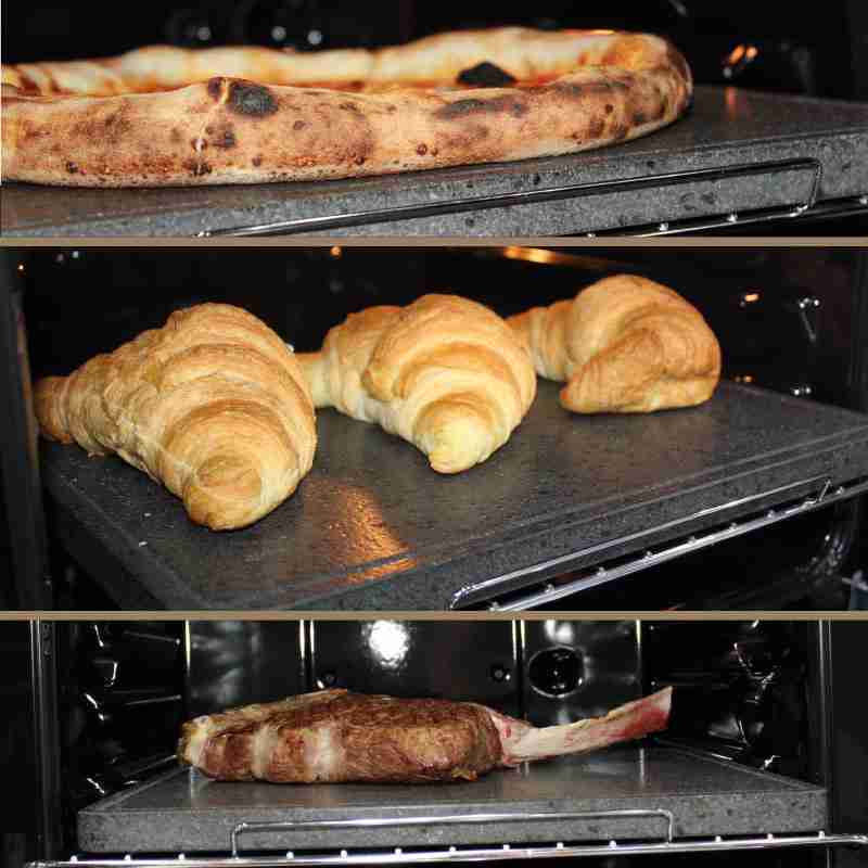 Pizza Hot Stone presenta il piano da cottura interamente in pietra lavica che vi offre l’esperienza di cucinare la pizza direttamente sulla pietra secondo la tradizione italiana. Utilizzando il piano in pietra, il pane e la pizza avranno il sapore e la fragranza tipica della cottura nel forno a legna. La pietra posizionata nel forno cuoce l’impasto alla perfezione senza bruciature e lascerà intatto il sapore senza alterazioni. Il risultato sarà una pizza croccante come nei migliori ristoranti. La pietra lavica riscaldata accuratamente vi consentirà di cuocere anche grandi pietanze o grandi tagli di carne o pesce, per una cucina gustosa e naturale al tempo stesso. Pizza Stone è corredata da un kit composto da pala richiudibile, mezzaluna per separare il vostro impasto e per tagliare la pizza e paletta per servire.